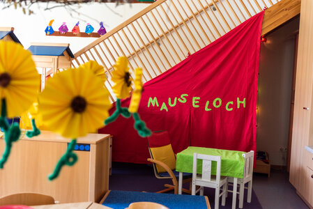 Die Maus- und Elefantengruppe bieten mit jeweils einem Gruppenraum, sowie einem Nebenraum und einer Hochebene auch den Ü3 Kindern genügend Raum, spielerisch ihre Persönlichkeit zu entwickeln und ihre Welt zu entdecken.