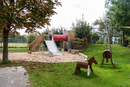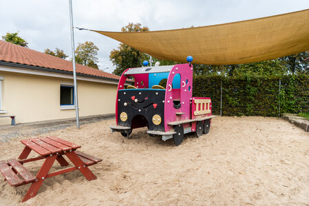 Mit allen Sinnen die Umwelt entdecken. Auf unserem großen Außenspielgelände gibt es vielfältige Möglichkeiten zur Wahrnehmungserfahrung. Ob Schaukeln, Rutschen, Klettern, Buddeln oder Fahrzeugfahren – hier ist für jedes Kind etwas dabei.