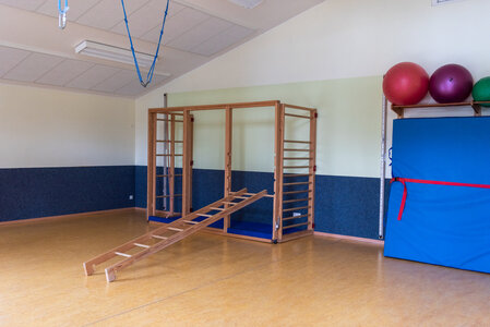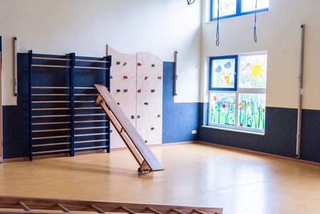 Unsere Turnhalle: Hier stehen Spiel, Spaß und Spannung im Vordergrund. Durch abwechslungsreiche Bewegungsangebote haben die Kinder die Möglichkeit, ihre körperlichen Fähigkeiten zu erproben und verschiedene Bewegungserfahrungen zu sammeln.
